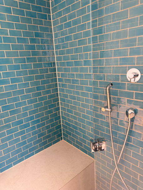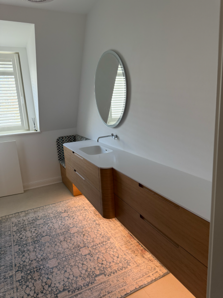 Stilvolles Badezimmer mit Design-Einbauten und Miele Waschtrockner
